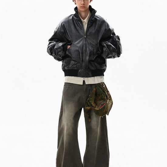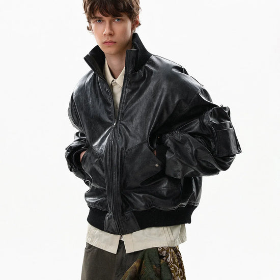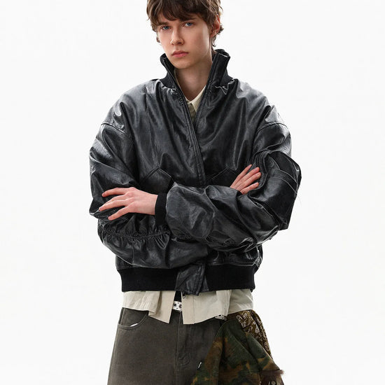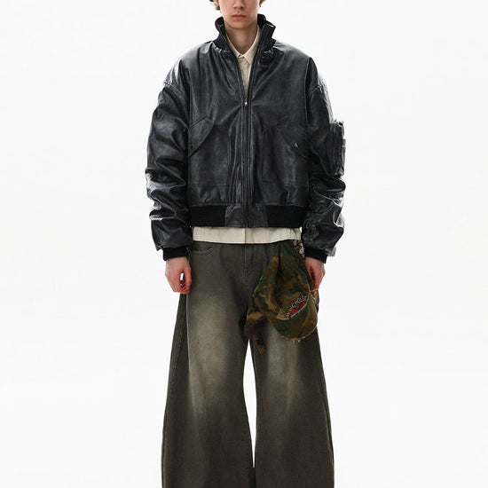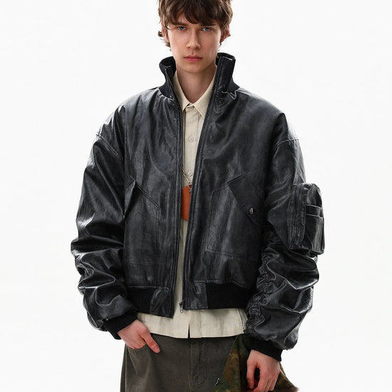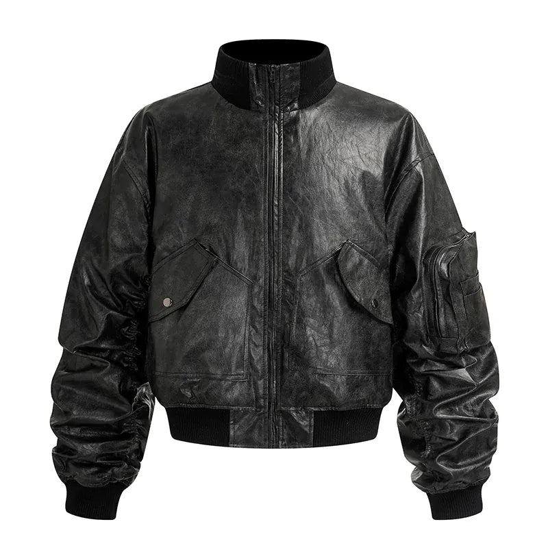 RT No. 10042 LEATHER ZIP-UP JACKET