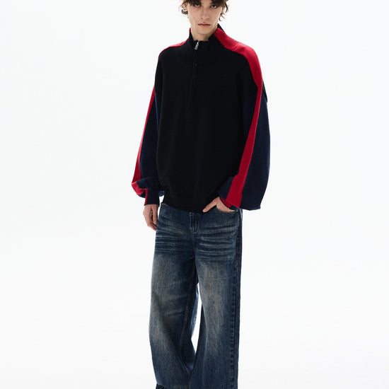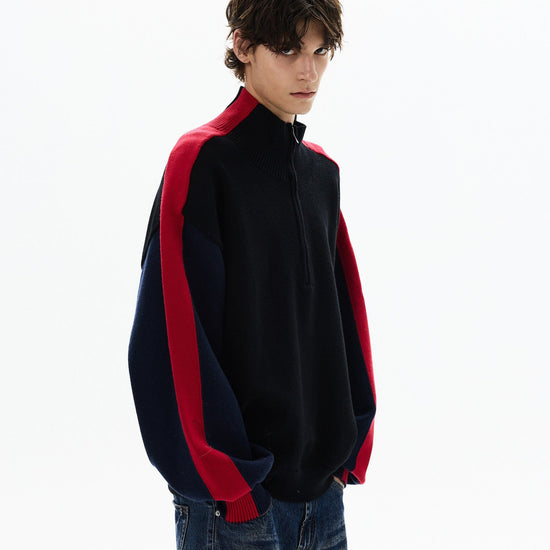 RT No. 50414 KNITWEAR RED SLEEVE QUARTER ZIP SWEATER