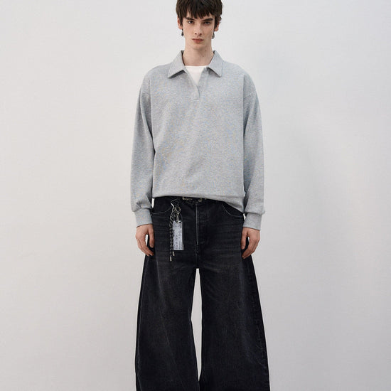 RT No. 7002 WASHED BLACK WIDE STRAIGHT DENIM JEANS