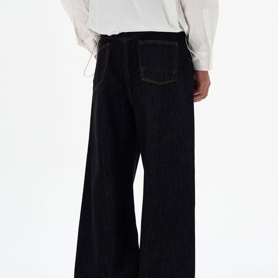 RT No. 7002 WASHED BLACK WIDE STRAIGHT DENIM JEANS