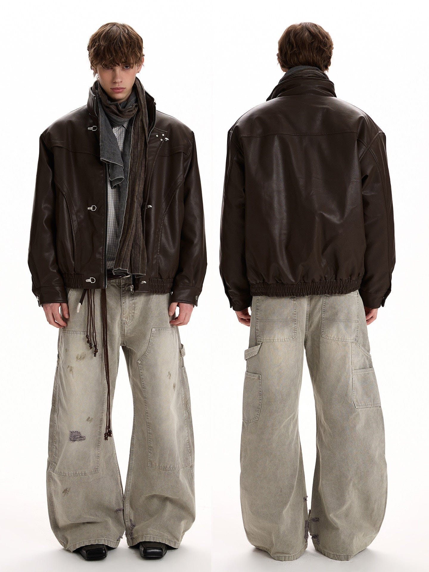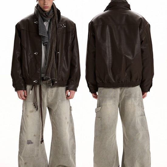 RT No. 10042 LEATHER ZIP-UP JACKET