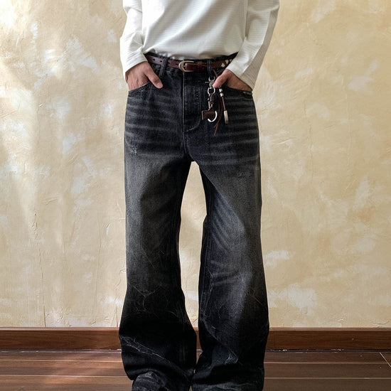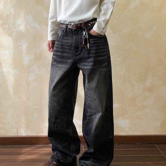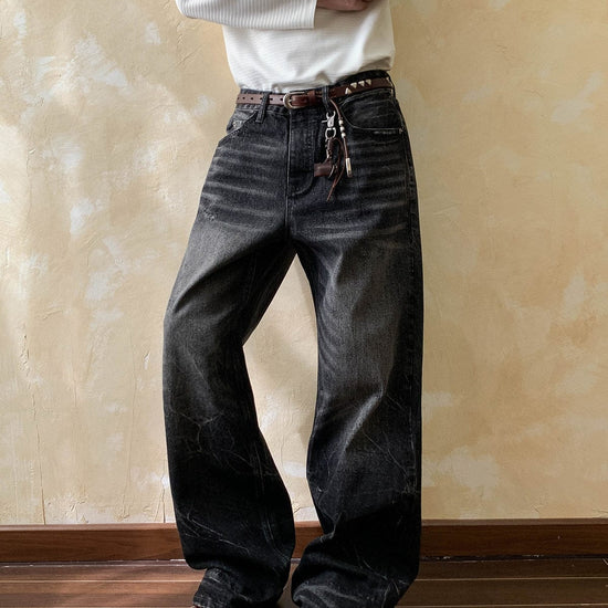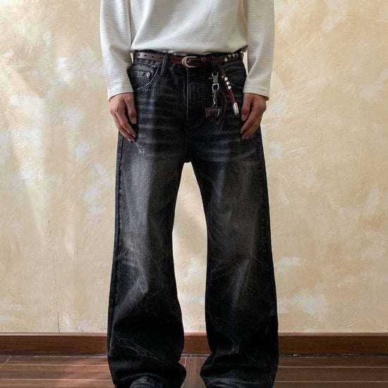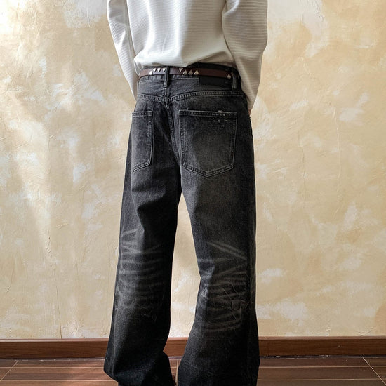 RT No. 7002 WASHED BLACK WIDE STRAIGHT DENIM JEANS