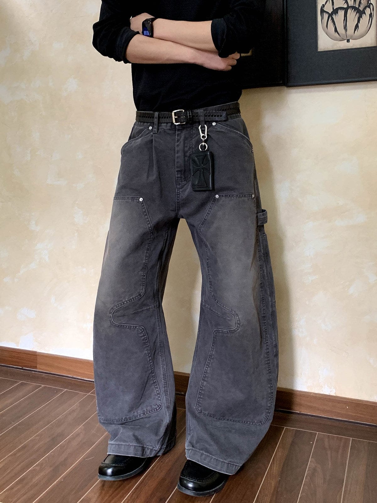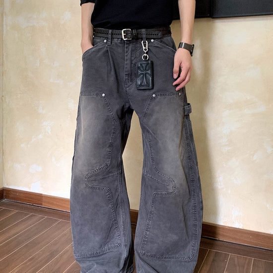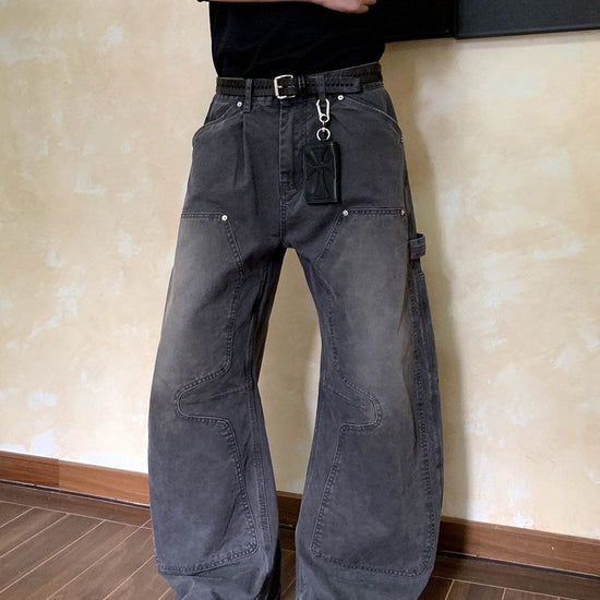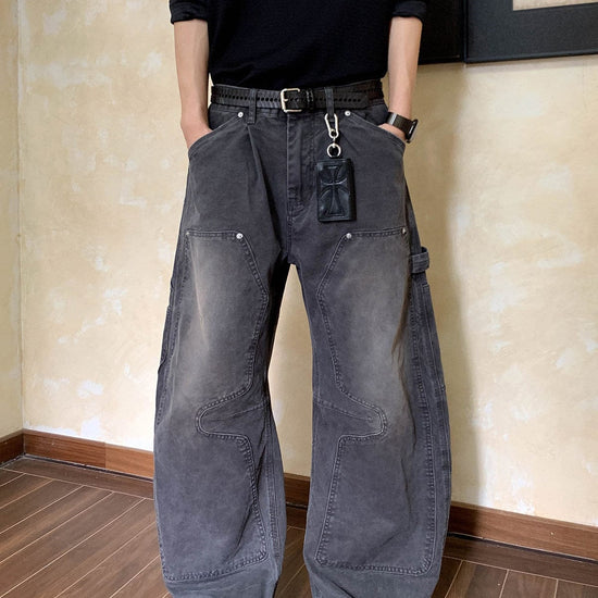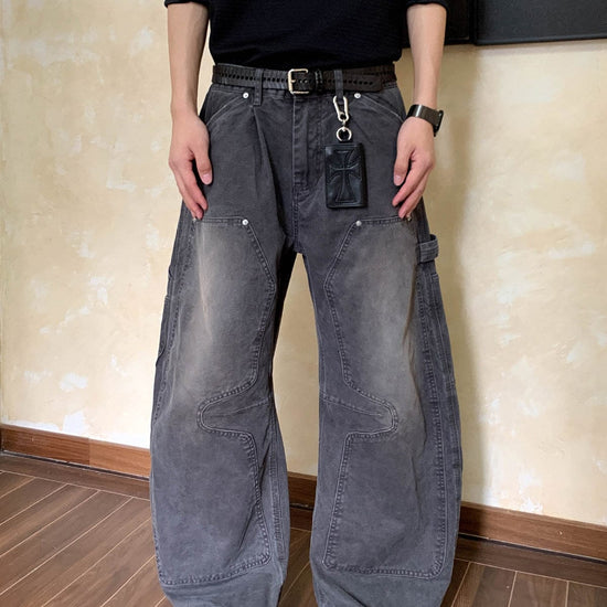 RT No. 7002 WASHED BLACK WIDE STRAIGHT DENIM JEANS