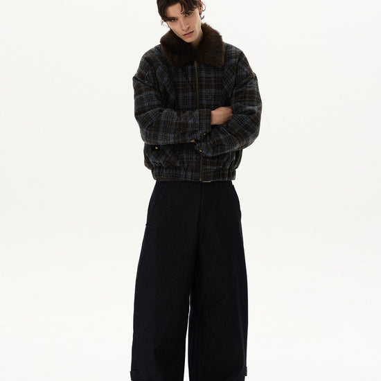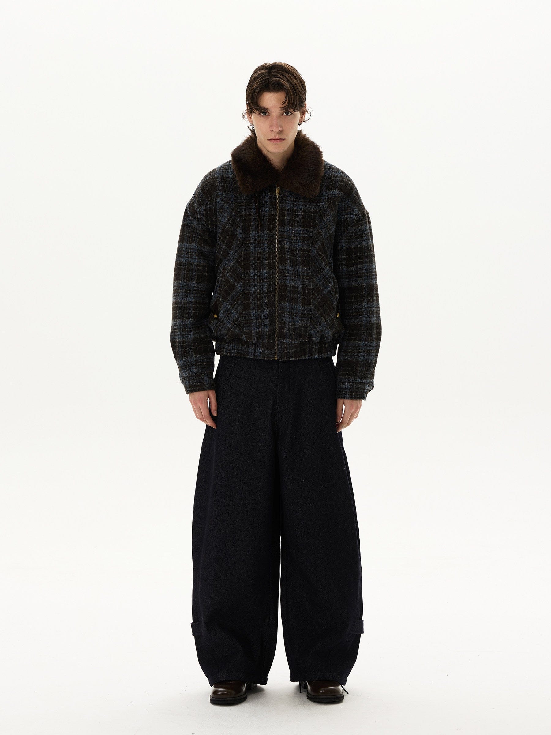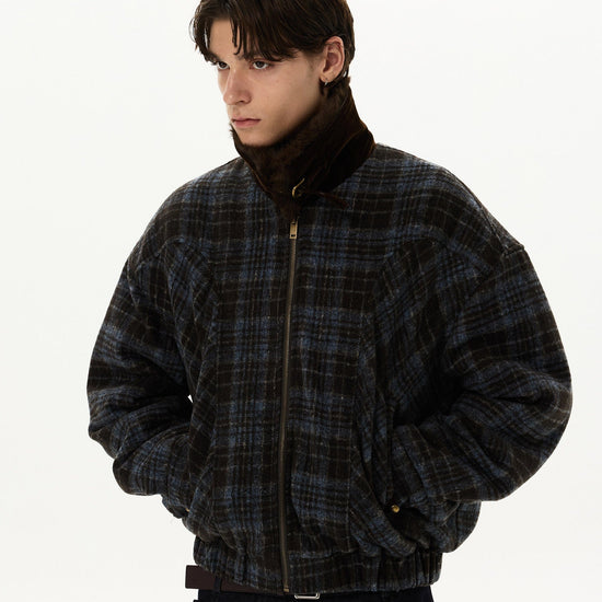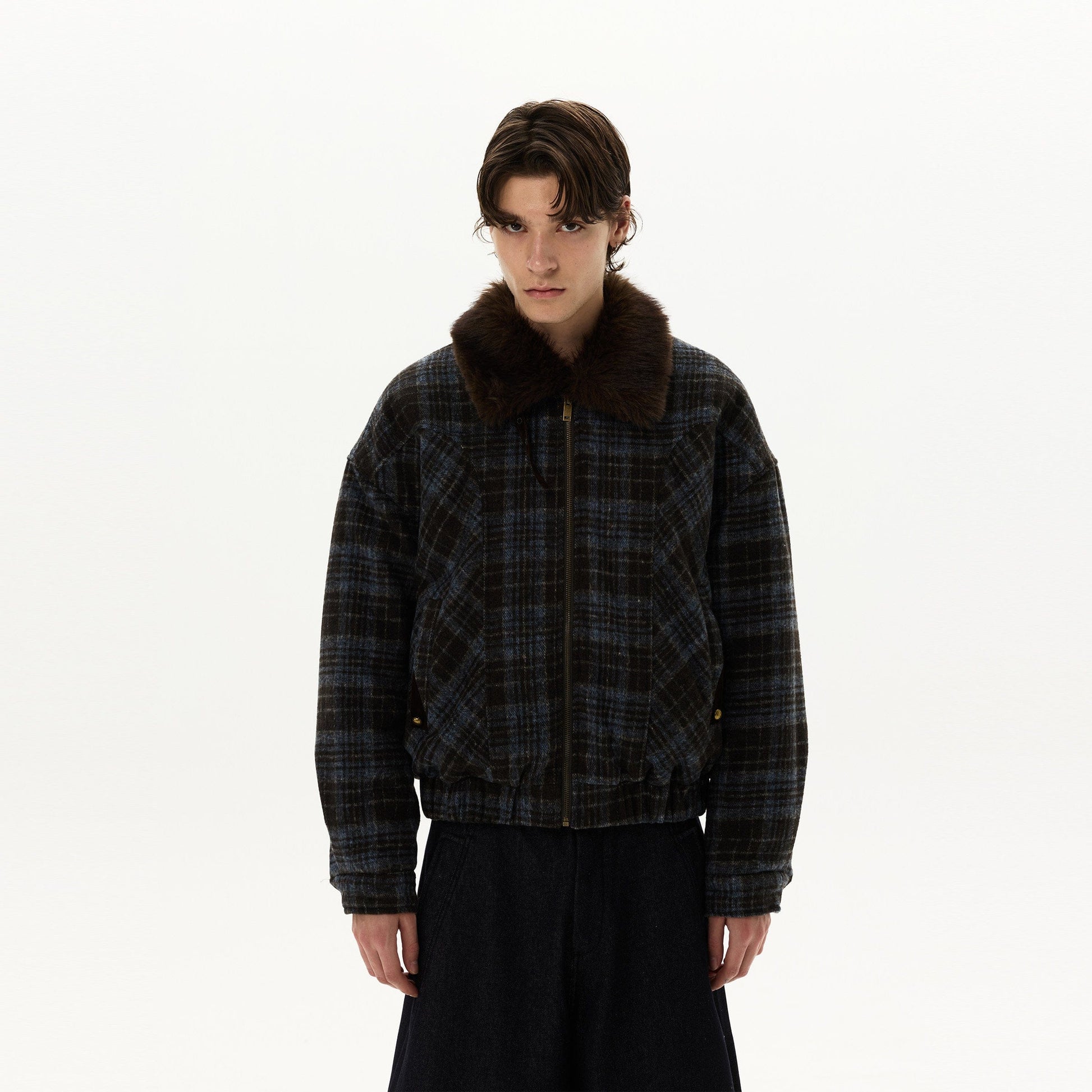 RT No. 59012 WOOLEN PLAID FUR COLLAR JACKET