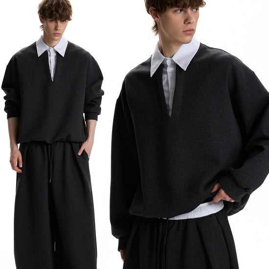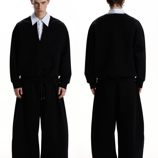 RT No. 59059 TWO-PIECE V-NECK POLO SWEATER & SILHOUETTE SWEATPANTS