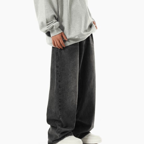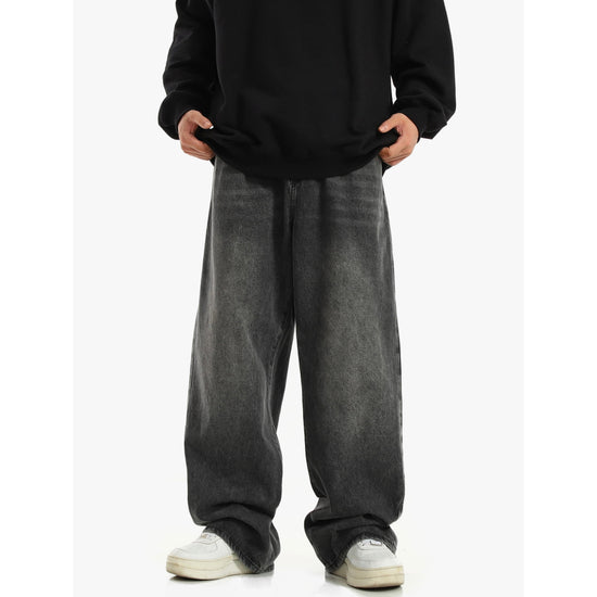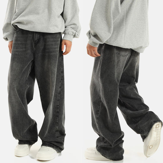 RT No. 10382 DARK GRAY BAGGY STRAIGHT DENIM JEANS